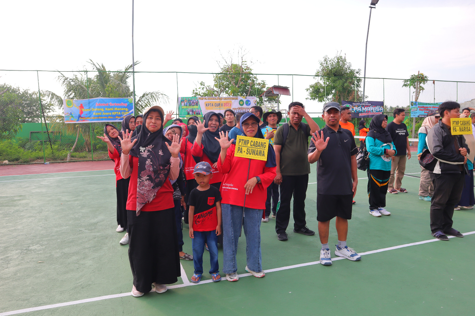 Gorontalo, 22 Oktober 2023. Bertempat di Lapangan Tenis Pengadilan Tinggi Agama Gorontalo, dilaksanakan acara penutupan KPTA Cup II 2023. Ketua Pengadilan Agama Suwawa, Ibu Royana Latif., S.H.I., M.H, beserta Wakil Ketua PA Suwawa, Panitera PA Suwawa, dan seluruh Pegawai PA Suwawa mengikuti acara penutupan kegiatan KPTA Cup II 2023.