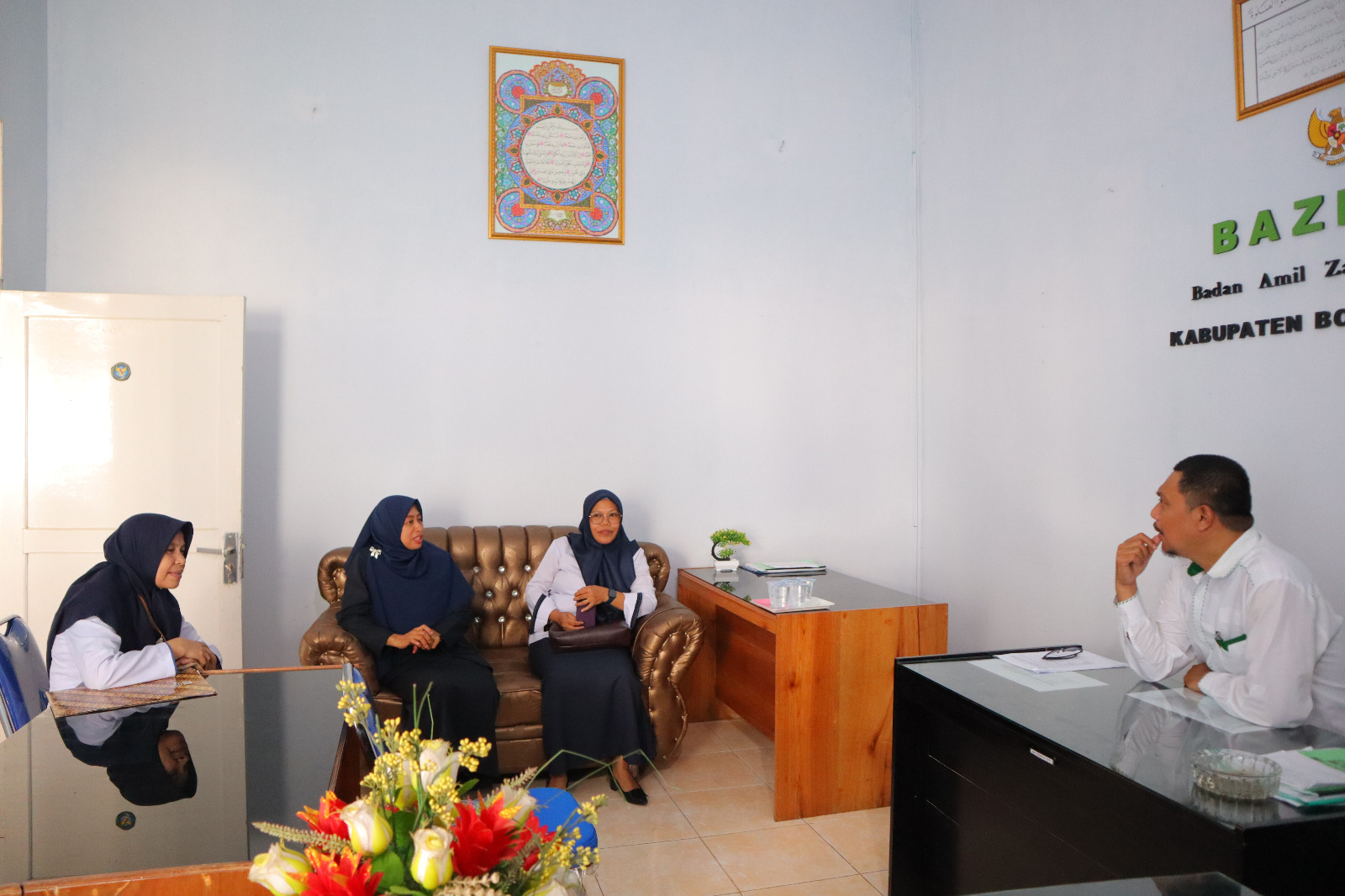 Suwawa, 23 Oktober 2023, Bertempat di kantor Baznas (Badan Amil Zakat Nasional) Bone Bolango, Pengadilan Agama Suwawa yang kali ini diwakili oleh Ketua Pengadilan Agama Suwawa, Ibu Royana Latif., S.H.I., M.H., didampingi Wakil Ketua Pengadilan Agama Suwawa, Ibu Kartiningsih Dako.,S.E.I., M.H., dan Panitera PA Suwawa, Ibu Yusna M. Koem, S.Ag, M.H., melakukan pertemuan dengan Ketua Badan Amil Zakat Nasional Bone Bolango, Bapak Faisal Hasyim Pakaya.