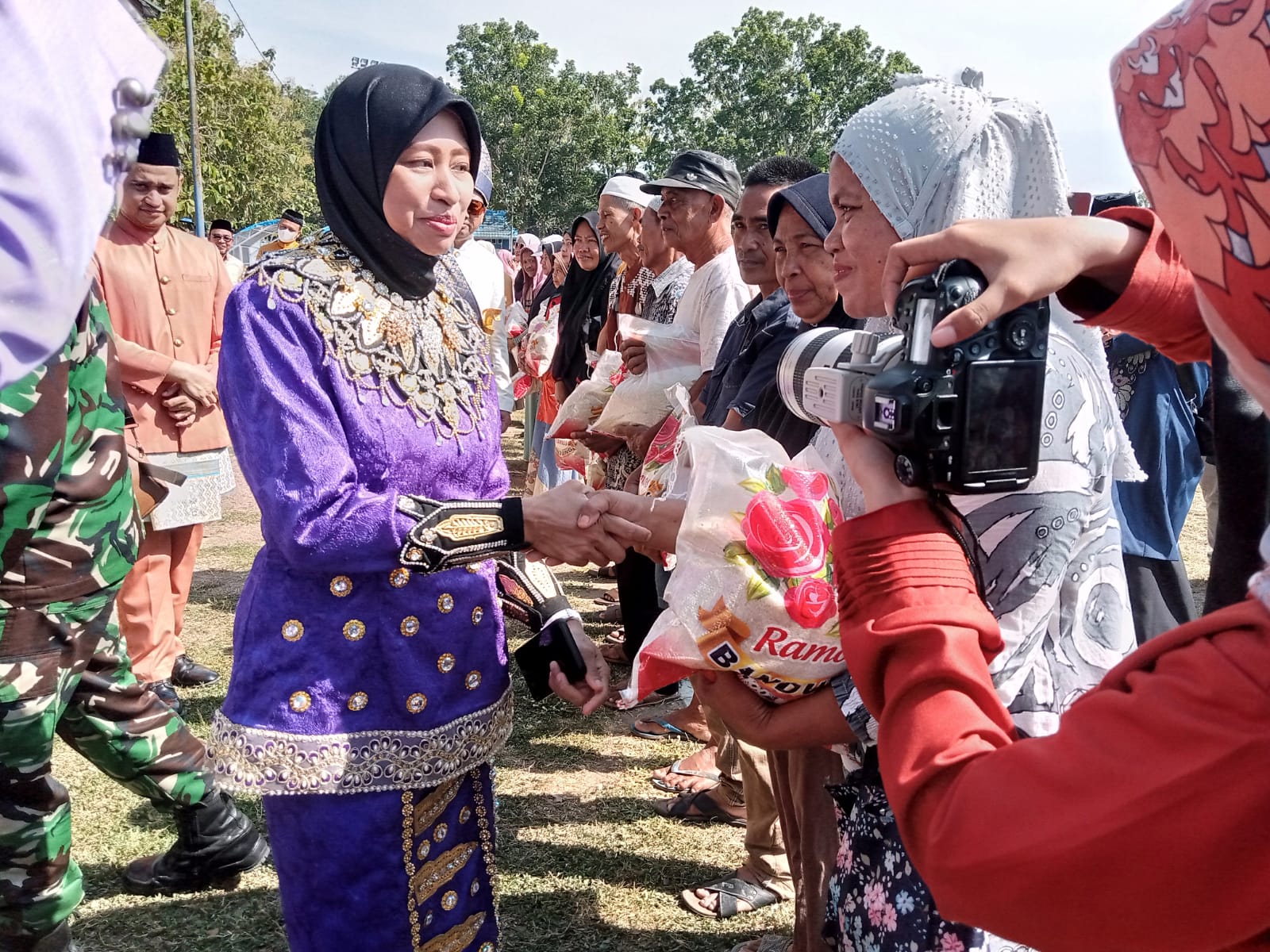 Dalam upacara peringatan hari sumpah pemuda yang ke-95 tahun 2023 ini, seluruh peserta mengenakan pakaian adat daerah nusantara. Tidak terkecuali Ketua Pengadilan Agama Suwawa, yang tampil cantik dan anggun menggunakan pakaian adat daerah Gorontalo berwarna unggu. Semoga dengan adanya upacara peringatan sumpah pemuda ini, menyadarkan betapa pentingnya melanjutkan api semangat Sumpah Pemuda dalam bentuk profesi kita sebagai warga peradilan yang secara umum di nanungi oleh Mahakamah Agung dengan bekerja secara profesinonal.