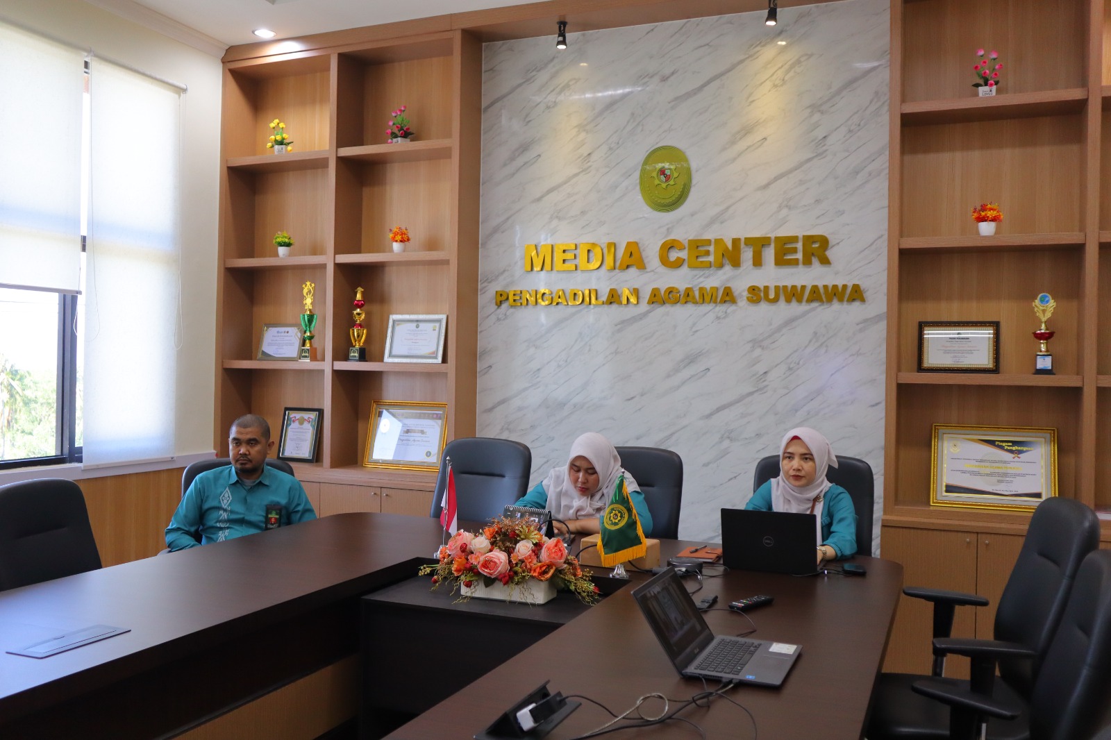 Kamis, 07 Desember 2023 bertempat di Ruang Pengadilan Agama Suwawa, Sekretaris Pengadilan Agama Suwawa, Ibu Hartati Samsudin, S.Ag., bersama Kasubbag PTIP, Ibu Nur Isna Ningsih Katili, S.E., dan Panitera Muda Hukum, Bapak Muslih Tetenaung, S.Hi., M.H., mengikuti rapat persiapan penyusunan laporan kinerja tahun 2023 dan penyusunan Rencana Umum Pengadaan (RUP) tahun 2024 secara daring melalui zoom meeting berdasarkan surat undangan dari Pengadilan Tinggi Agama Gorontalo Nomor: 1630/KPTA.W26/UND.OT1.6/XII/2023 tertanggal 04 Desember 2023.