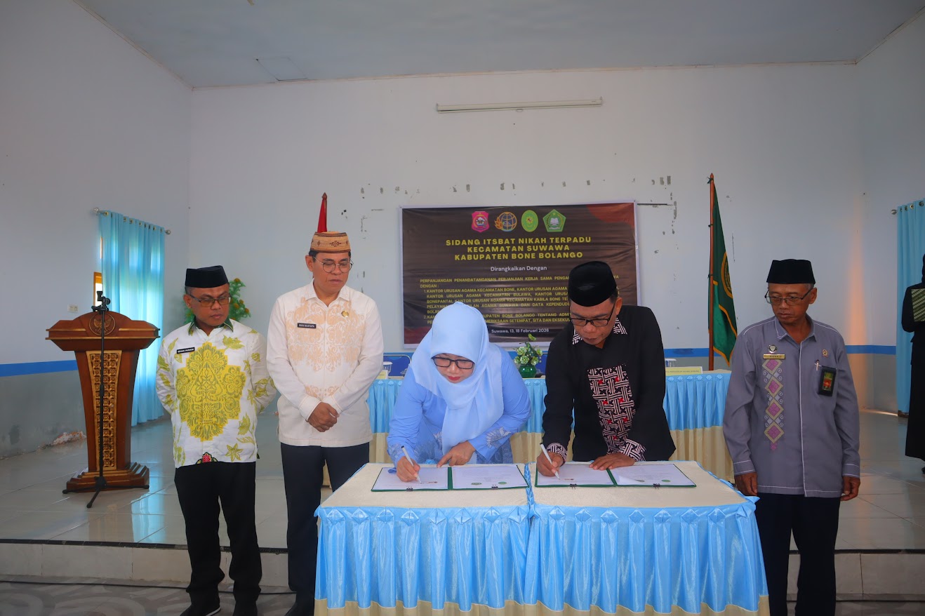 Suwawa - Jumat, 13 Februari 2026. Penandatanganan perjanjian kerja sama ini bertujuan untuk meningkatkan kolaborasi dalam pelaksanaan penyuluhan pranikah sebagai upaya pencegahan pernikahan tidak tercatat, serta mendukung integrasi data perceraian yang diperlukan dalam proses pendaftaran pernikahan. Melalui kerja sama ini, diharapkan masyarakat dapat memperoleh edukasi yang lebih komprehensif mengenai pentingnya kesiapan pernikahan secara hukum dan agama, serta memastikan tertib administrasi dalam setiap peristiwa hukum yang berkaitan dengan perkawinan.