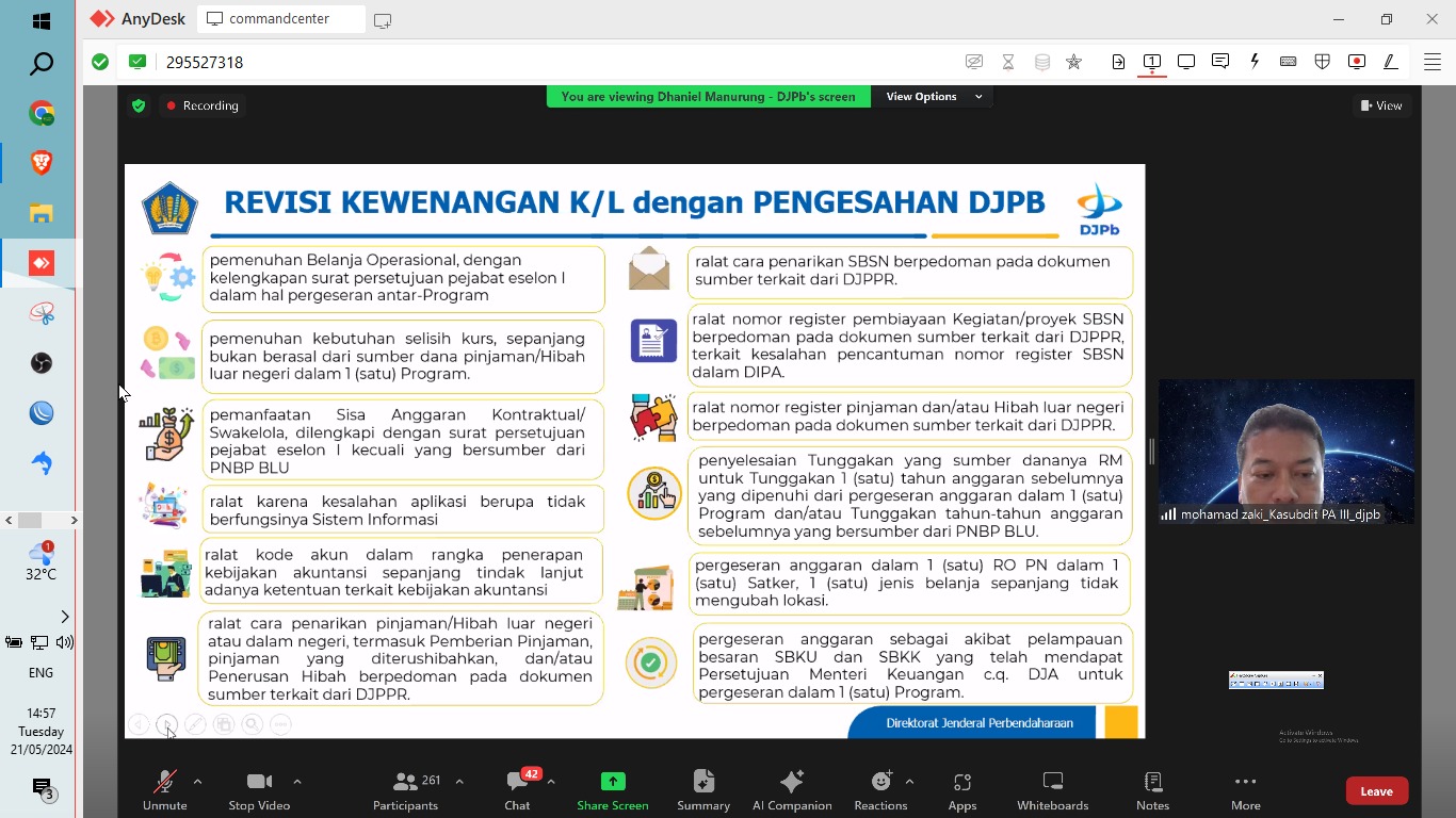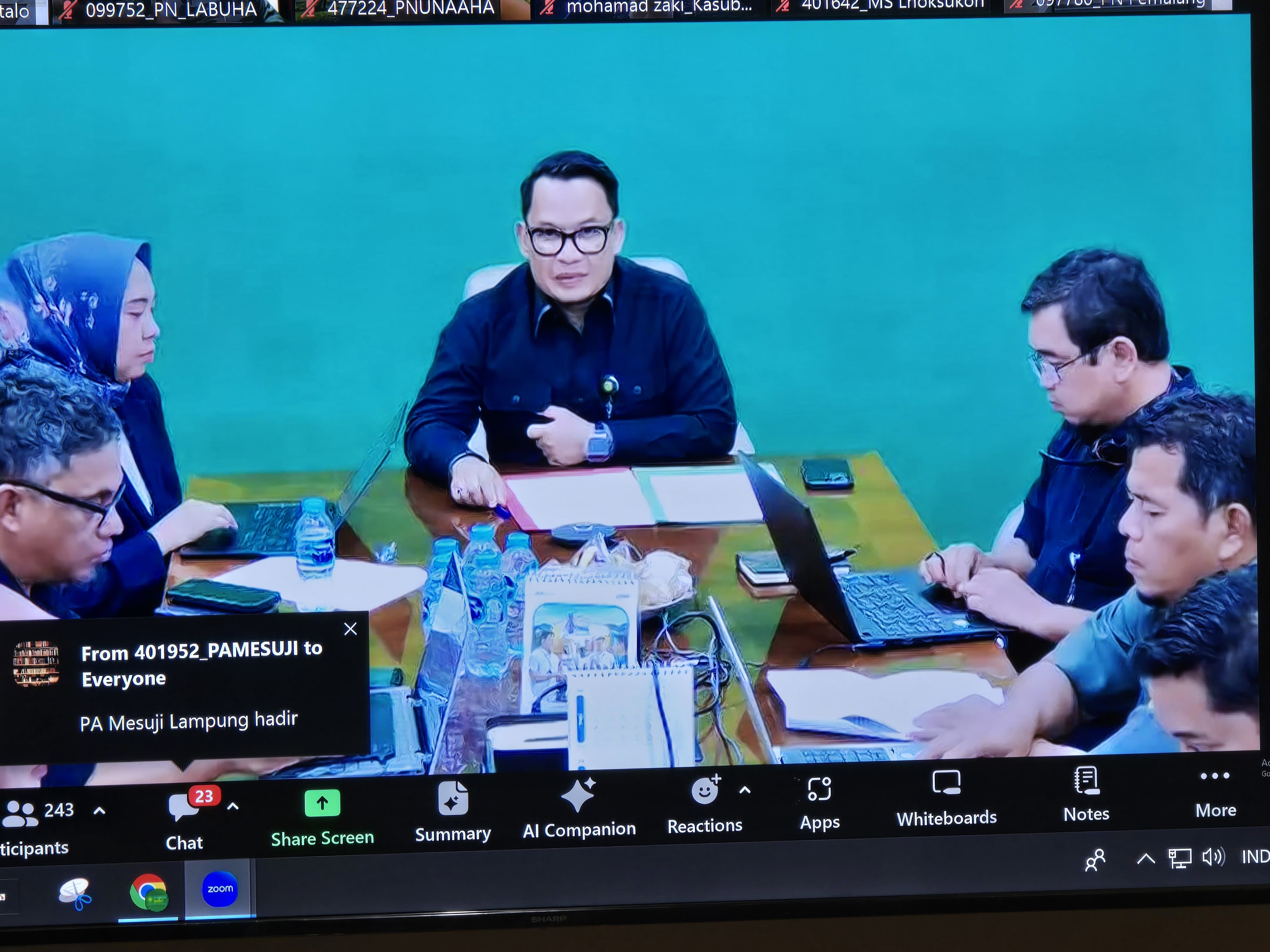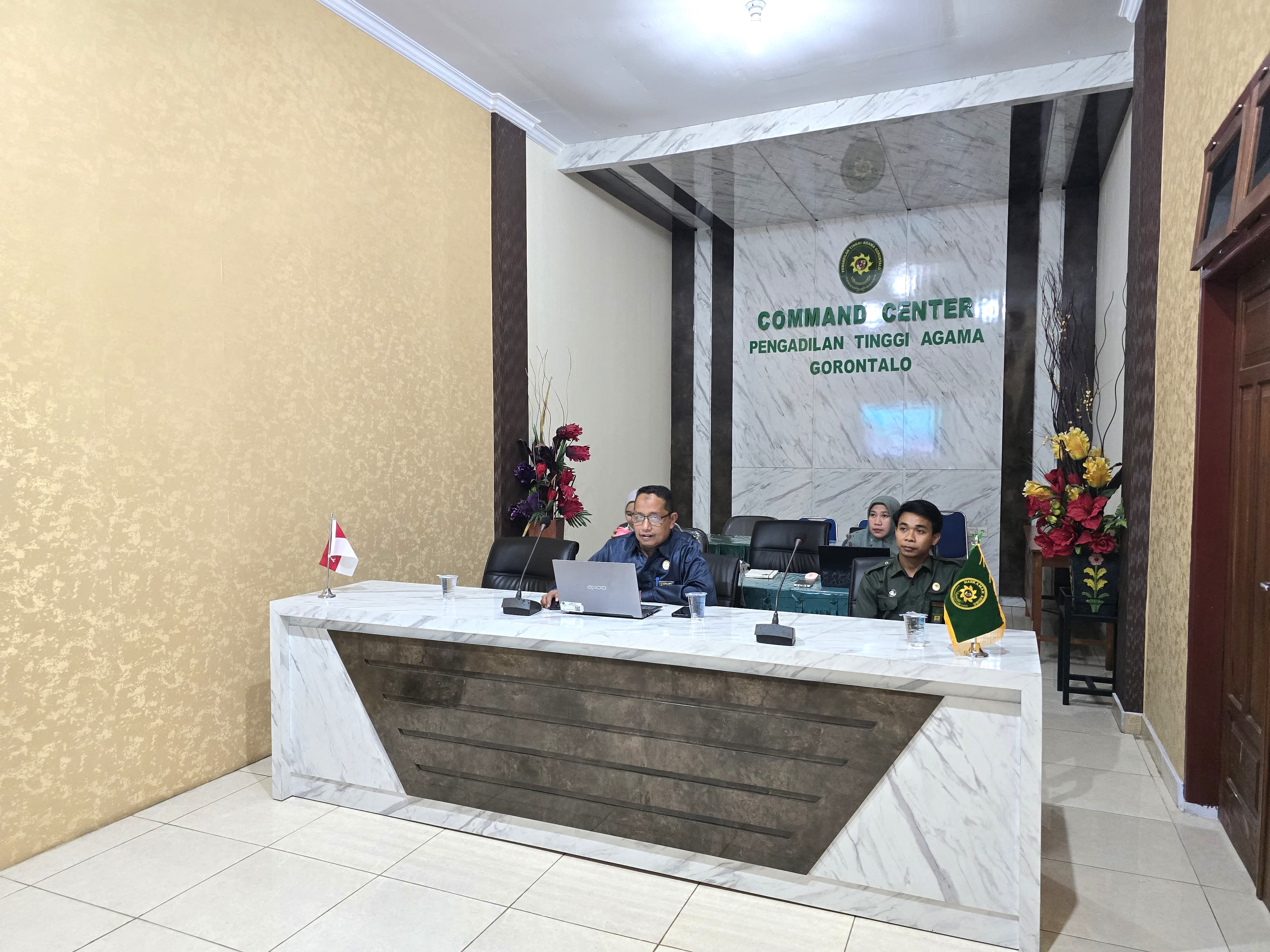 Gorontalo - Pada Selasa, 21 Mei 2024 bertempat di command center Pengadilan Tinggi Agama Gorontalo. Kepala Bagian Perencanaan dan Kepegawaian Harsono Pulu Rahman, S.H.I., M.H. dan staf-staf Sub bagian Rencana Program dan Anggaran mengikuti undangan rapat secara online melalui aplikasi zoom meeting. Rapat tersebut berdasarkan surat Badan Urusan Administrasi Mahkamah Agung RI Nomor 748/BUA.3/RA1.8/V/2024 Perihal Rapat Koordinasi Pelaksanaan Optimalisasi dan Efisiensi dengan Direktorat Pelaksanaan Anggaran Kementerian Keuangan RI Tahun Anggaran 2024.