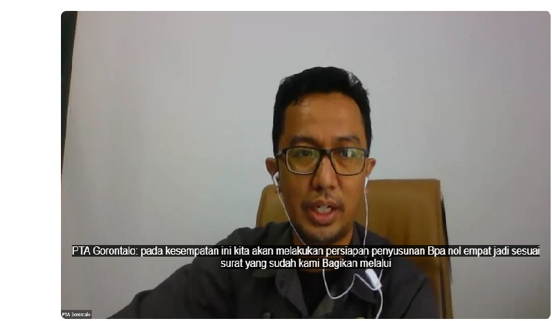 Kegitan rapat tersebut telah menindaklanjuti surat Dirjen Badilag Nomor 2030/DJA/.1/RA1.7/IX/2024 Persiapan Penyusunan Pagu Alokasi TA 2025 dan Penyesuaian ABKK TA 2025. PTA Gorontalo menginstruksikan kepada seluruh satker wilayah PTA Gorontalo agar bisa menyelesaikan penyusunan pagu alokasi anggaran ABKK TA 2025 untuk menyesuaikan TOR dan RABnya sehingga sesuai yang diinput pada apalikasi SAKTI. Dan melalui zoom tersebut Rahmanto Bilondatu menyampaikan semoga bisa diselesaikan secepatnya sesusai waktu yang ditentukan.