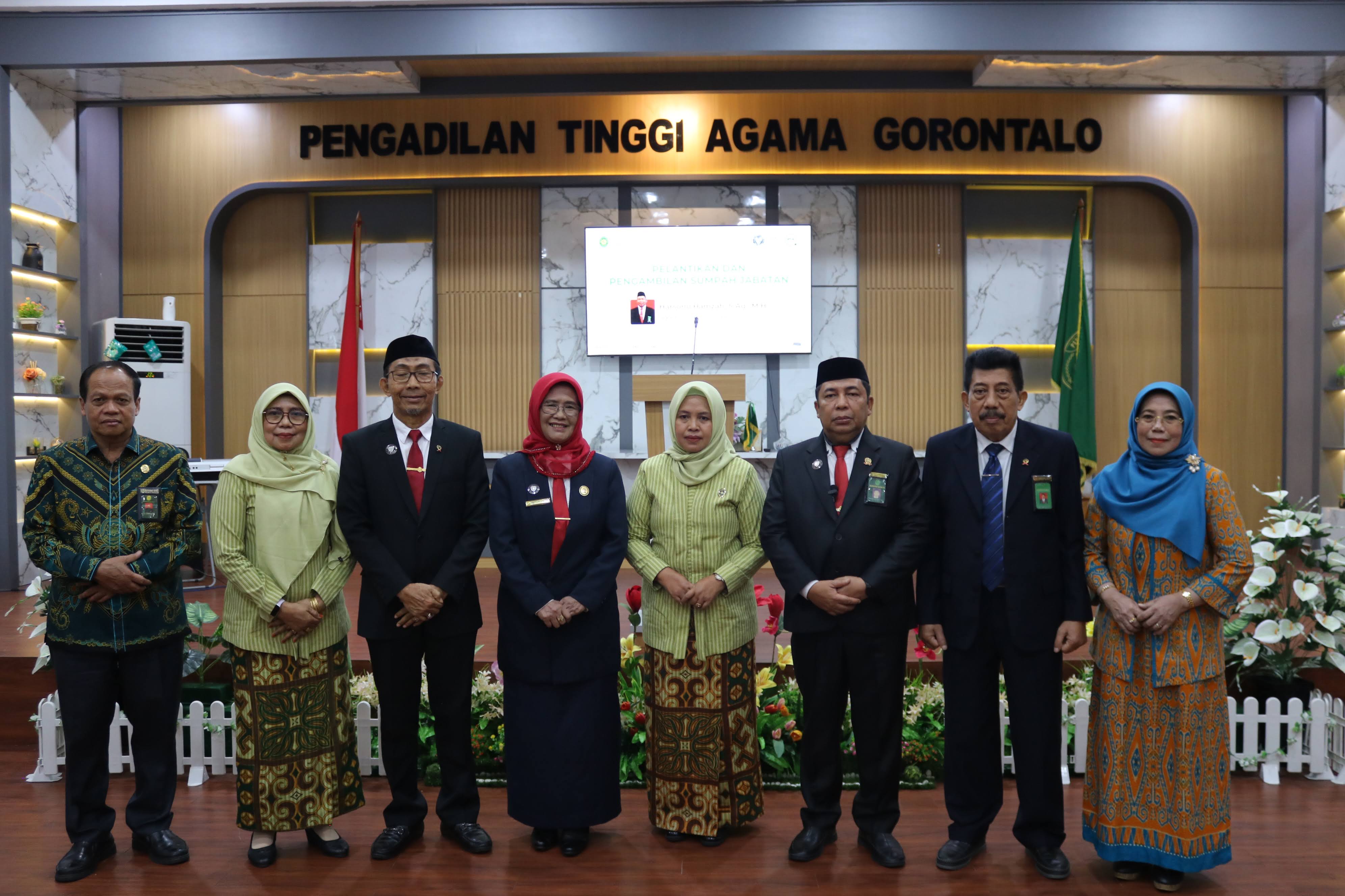 Gorontalo (16/4/2026) - Bertempat di Aula Kantor Pengadilan Tinggi Agama (PTA) Gorontalo, telah dilaksanakan upacara Pelantikan dan Pengambilan Sumpah Jabatan Sekretaris PTA Gorontalo yang dirangkaikan dengan Pengantar Alih Tugas. Kegiatan dihadiri oleh Ketua PTA Gorontalo, Ketua PTA Manado, Wakil Ketua PTA Gorontalo dan Wakil Ketua PTA Manado, para Hakim Tinggi, Panitera dan Sekretaris PTA Gorontalo, serta Ketua, Wakil Ketua, Panitera, dan Sekretaris Pengadilan Agama sewilayah PTA Gorontalo. Turut hadir pula pejabat struktural dan fungsional, pengurus dan anggota Dharmayukti Karini, serta seluruh pegawai PTA Gorontalo.