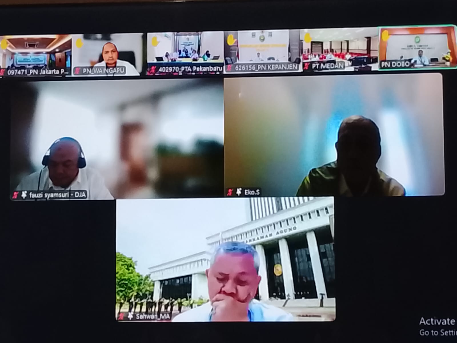 Gorontalo – Sekretaris Pengadilan, Fahrurosyid, S.H., M.H., bersama Kasubag Rencana Program dan Anggaran, Lukman Alan Tomayahu, S.E., M.M., serta staf terkait mengikuti Rapat Koordinasi Nasional melalui virtual zoom bersama Biro Perencanaan Mahkamah Agung Republik Indonesia pada Senin (02/03/2026).