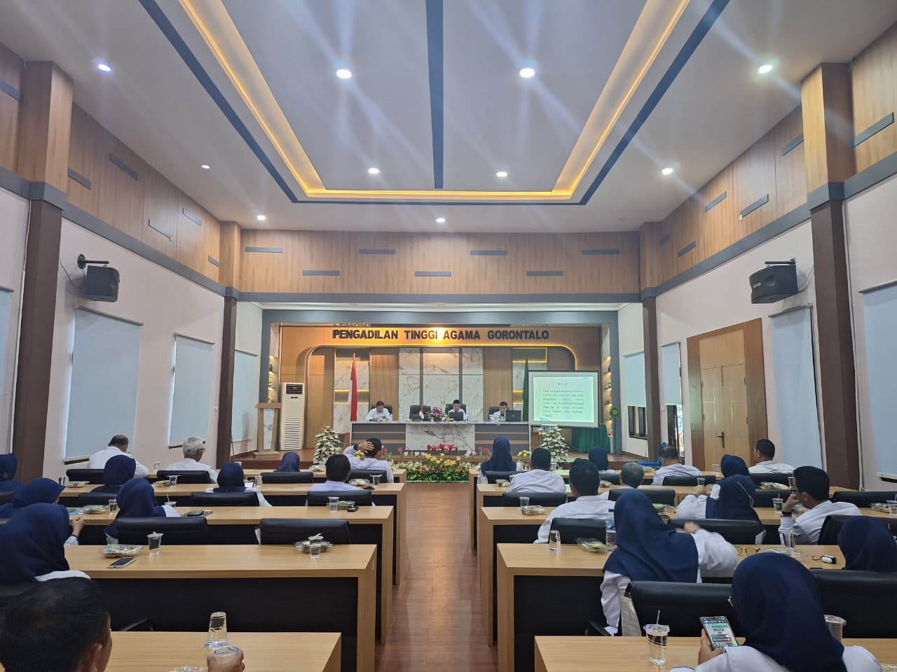 Gorontalo – Pengadilan Tinggi Agama (PTA) Gorontalo melaksanakan apel pagi pada Senin, 25 Agustus 2025. Kegiatan yang berlangsung di halaman kantor PTA Gorontalo ini dipimpin oleh Hakim Tinggi, Yang Mulia Drs. Kharis. Apel pagi diikuti oleh seluruh aparatur, baik pejabat struktural maupun fungsional, dengan tertib dan penuh khidmat. Kegiatan ini merupakan rutinitas untuk menjaga kedisiplinan serta membangun kebersamaan di lingkungan kerja.