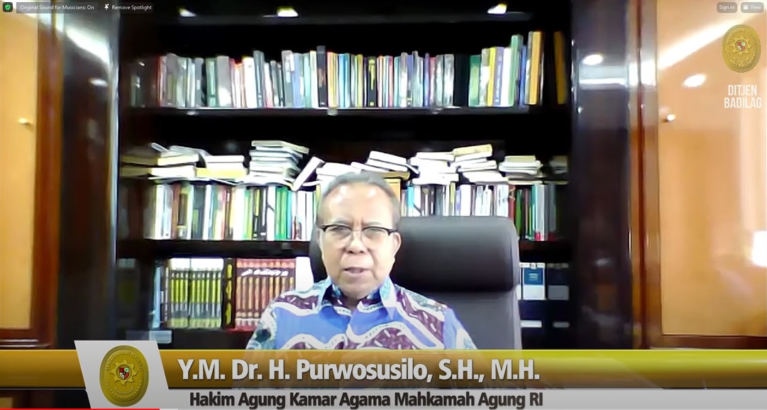 Selanjutnya acara di moderatori oleh Hakim Yustisial Mahkamah Agung RI yaitu Bapak Dr. M. Nur Syafiuddin, S.Ag., M.H. dan penyampaian materi oleh narasumber Y.M. Dr. H. Purwosusilo, S.H., M.H.. hingga sesi tanya jawab berakhir dan acara ditutup oleh Direktur Pembinaan Tenaga Teknis Peradilan Agama yaitu Bapak Dr. H. Candra Boy Seroza, S.Ag., M.Ag.