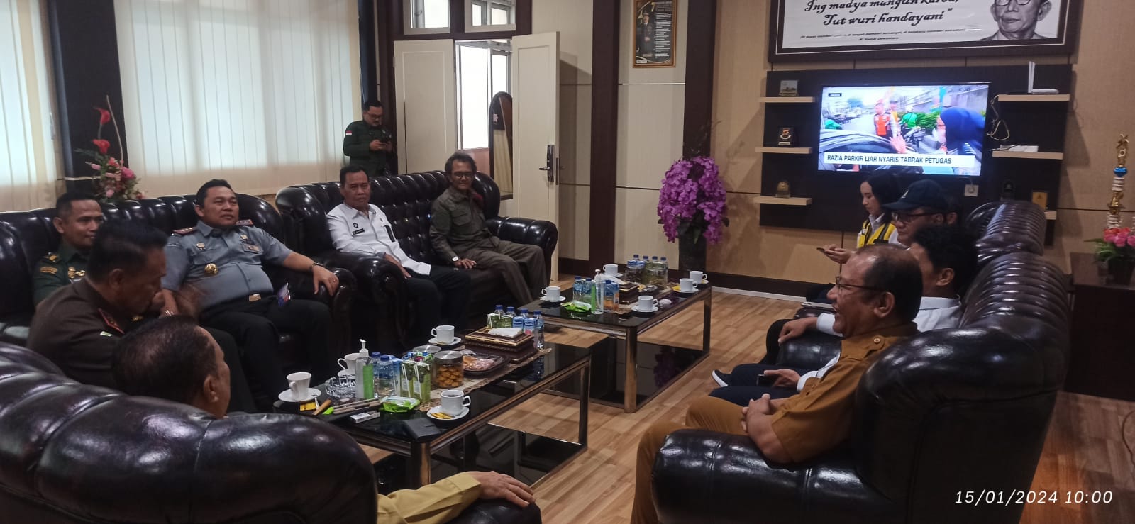 Sekretaris PTA Gorontalo beserta tamu yang hadir pada acara tersebut disambut langsung oleh Kepala Kejaksaan Tinggi Gorontalo Bapak Purwanto Joko Irianto, S.H., M.H. di ruang kerja beliau, tidak hanya Sekretaris PTA Gorontalo turut hadir pada kegiatan ini yaitu Forkopimda Gorontalo diantaranya Pengadilan Tinggi, PUPR, Pemerintah Kota Gorontalo dll.