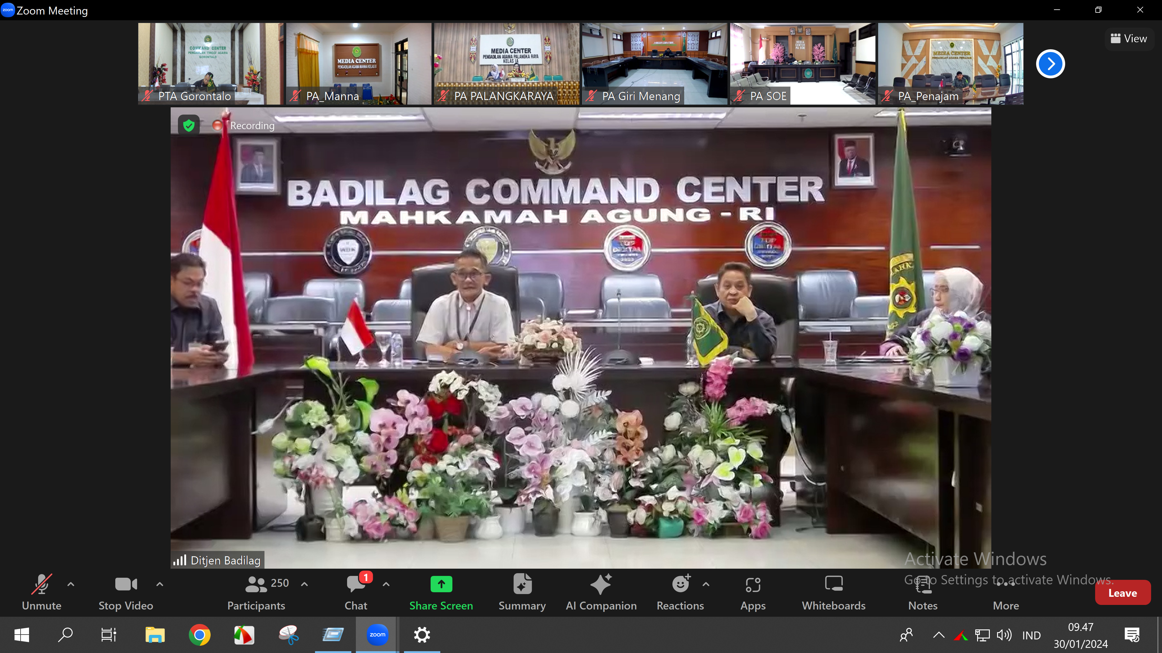 Gorontalo - Pengadilan Tinggi Agama Gorontalo menghadiri undangan Persiapan Kegiatan Laporan Tahunan 2023 oleh Sekretaris Direktur Jenderal Badan Peradilan Agama Mahkamah Agung RI sekaligus Plt. Dirjen Badilag pada hari Selasa, 30 Januari 2024 bertempat di Ruang Command Center PTA Gorontalo. Kegiatan ini diikuti oleh Kepala Bagian Kepegawaian PTA Gorontalo Bapak Harsono Pulu Rahman, S.H.I., M.H. dan Panitera PTA Gorontalo Bapak H. Kamaluddin, S.H., M.H.