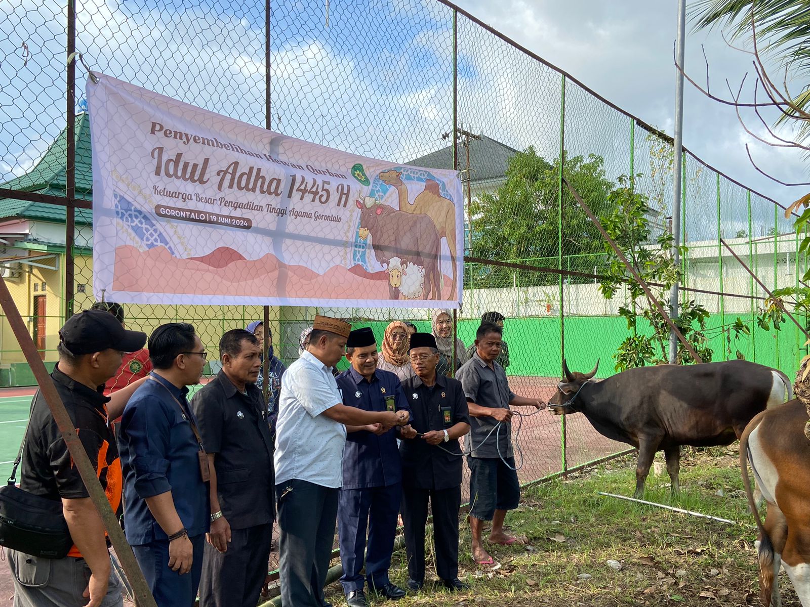 Prosesi penyembelihan hewan qurban dilaksanakan dengan khidmat. Tahun ini, Pengadilan Tinggi Agama Gorontalo berhasil mengumpulkan sumbangan untuk menyembelih lima ekor sapi. Empat ekor diantara sumbangan hewan Qurban dari para pegawai pengadilan, dan satu ekor merupakan sumbangan langsung dari Bank Syariah Indonesia. Hewan-hewan qurban ini telah diperiksa kesehatannya dan dinyatakan layak untuk disembelih sesuai dengan syariat Islam.