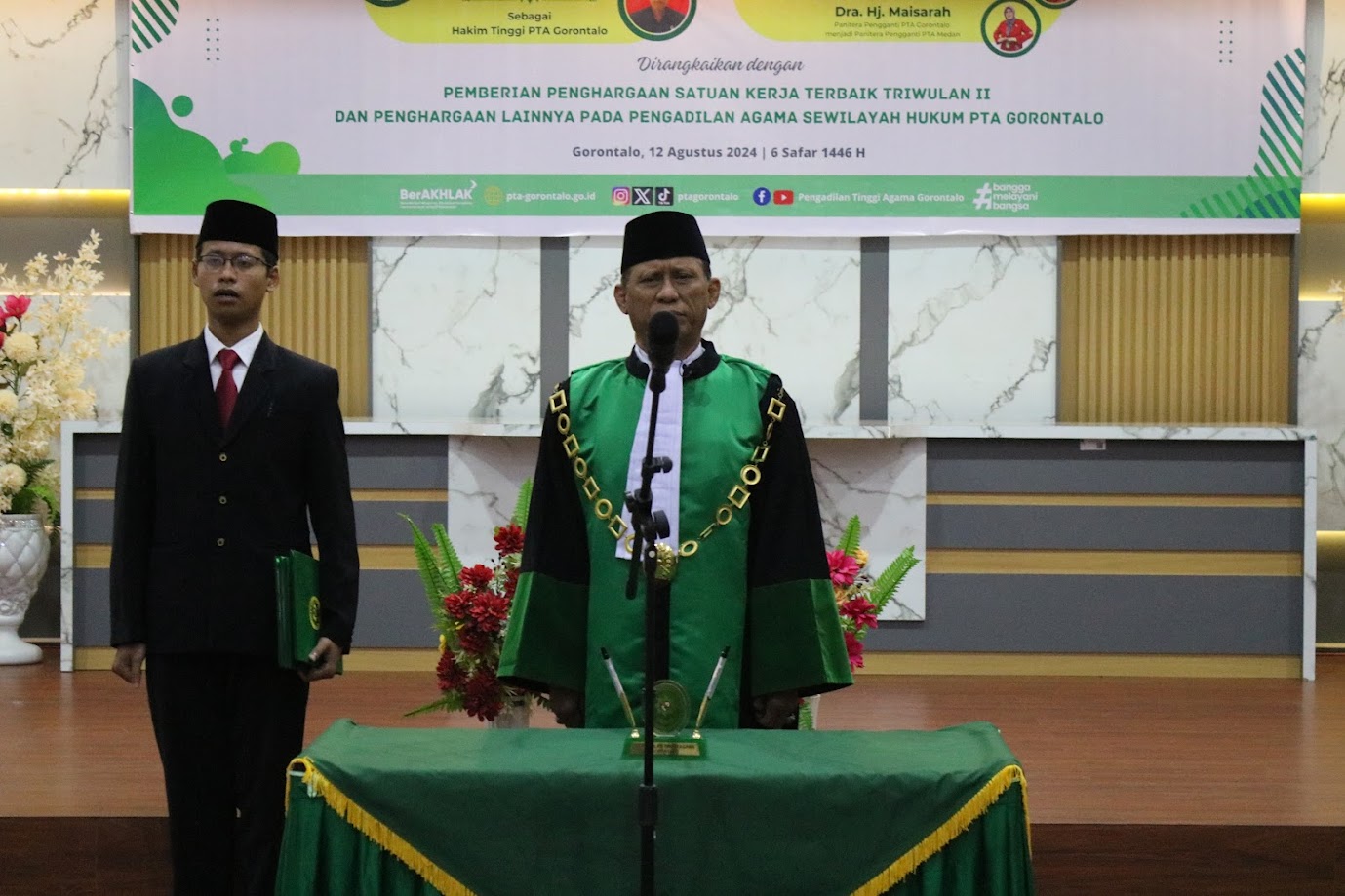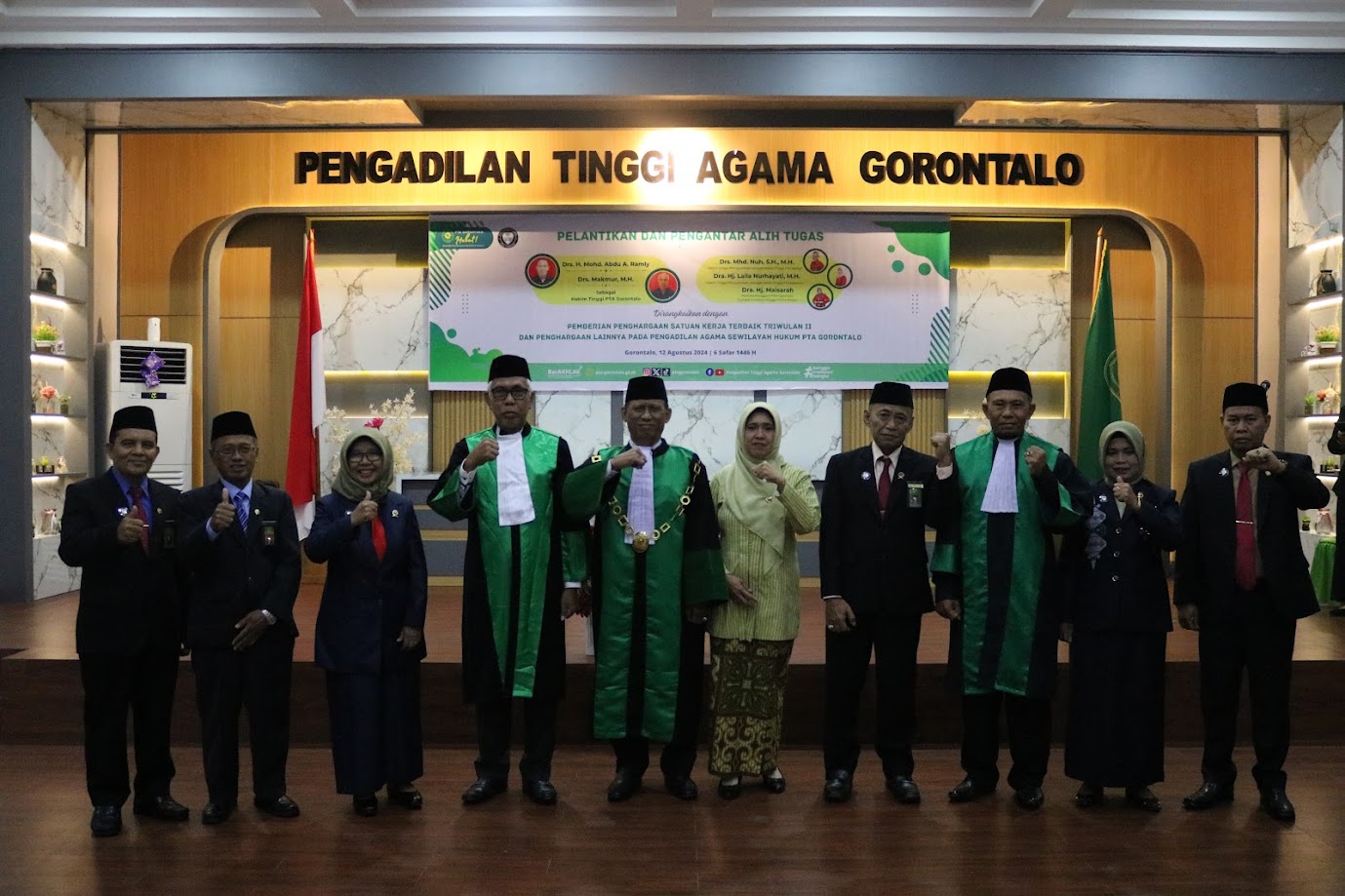 Gorontalo - Senin 12 Agustus 2024, Pengadilan Tinggi Agama (PTA) Gorontalo hari ini resmi melantik dua hakim tinggi baru, yaitu Bapak Drs. H. Mohd. Abdu A. Ramly dan Bapak Drs. Makmur, M.H., dalam sebuah upacara khidmat yang dihadiri oleh jajaran pejabat pengadilan se-wilayah PTA Gorontalo.
