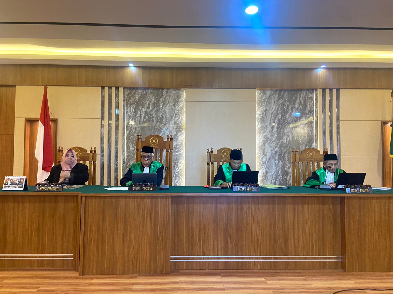Gorontalo (10/12/2024) - Pada hari ini bertempat di ruang sidang Pengadilan Tinggi Agama Gorontalo telah dilaksanakan sidang pembacaan putusan perkara cerai gugat yang dipimpin oleh Ketua Majelis Drs. Mohd. Abdu. A. Ramly, Drs. Makmur, M.H. dan Drs. Kharis masing-masing sebagai hakim anggota, dan Dra. Cindrawati S. Pakaya sebagai panitera pengganti. Pembacaan putusan sidang dilaksanakan secara daring melalui video teleconference dengan pengadilan pengaju yaitu Pengadilan Agama Suwawa.