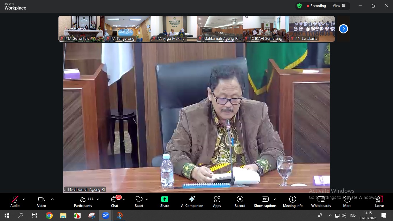 Gorontalo – Ikatan Hakim Indonesia (IKAHI) menyelenggarakan kegiatan Sosialisasi Pertanggungan Asuransi Kesehatan bagi Hakim Karier dan Hakim Muda Baru yang diikuti oleh seluruh pengurus dan anggota IKAHI se-Indonesia. Kegiatan ini dilaksanakan secara daring melalui Zoom Meeting yang bertempat di Command Center Pengadilan Tinggi Agama (PTA) Gorontalo, pada Senin, 5 Januari 2026.