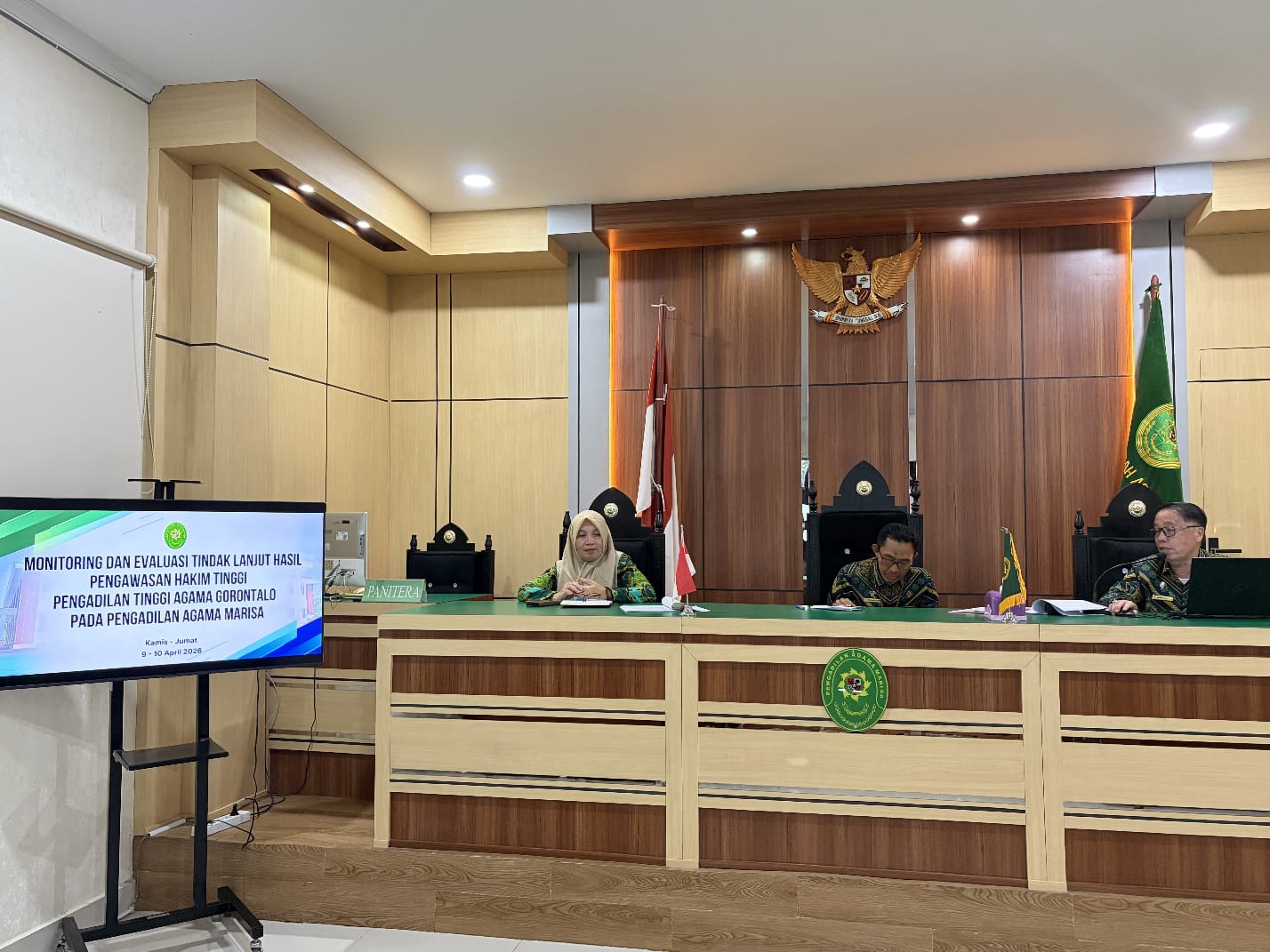 Gorontalo - Dalam rangka menjaga konsistensi kinerja serta meningkatkan profesionalitas aparatur peradilan, Pengadilan Tinggi Agama Gorontalo melaksanakan kegiatan Monitoring dan Evaluasi (Monev) di dua satuan kerja, yakni Pengadilan Agama Tilamuta dan Pengadilan Agama Marisa pada Kamis (9/4/2026).