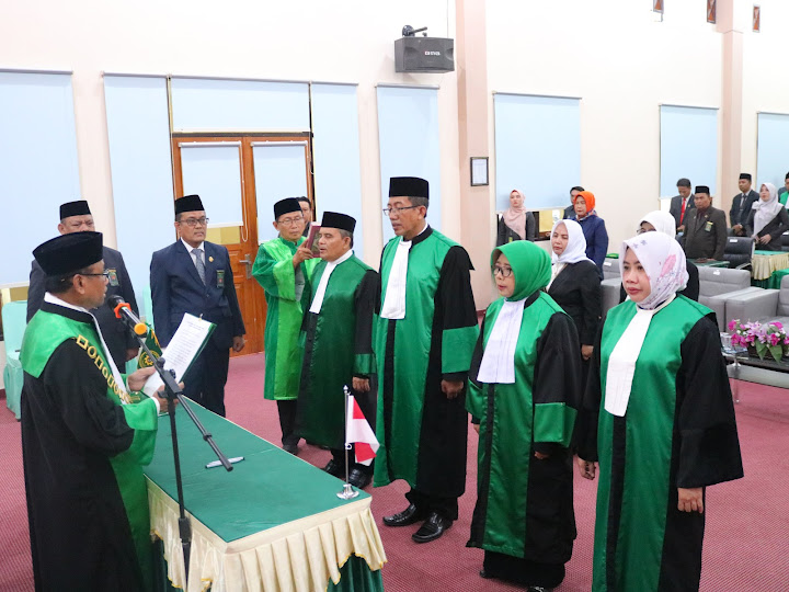 GORONTALO (Rabu,7/12) - Pengadilan Tinggi Agama (PTA) Gorontalo melaksanakan pelantikan dan pengambilan sumpah jabatan Wakil Ketua, Hakim Tinggi dan Panitera Pengganti PTA. Gorontalo serta Ketua Pengadilan Agama Kwandang. Kegiatan pelantikan dilaksanakan di Aula PTA. Gorontalo dengan dihadiri oleh seluruh pegawai PTA. Gorontalo dan Dharmayukti Karini Cabang PTA. Gorontalo serta para Ketua, Panitera dan Sekretaris Pengadilan Agama di wilayah hukum PTA. Gorontalo.