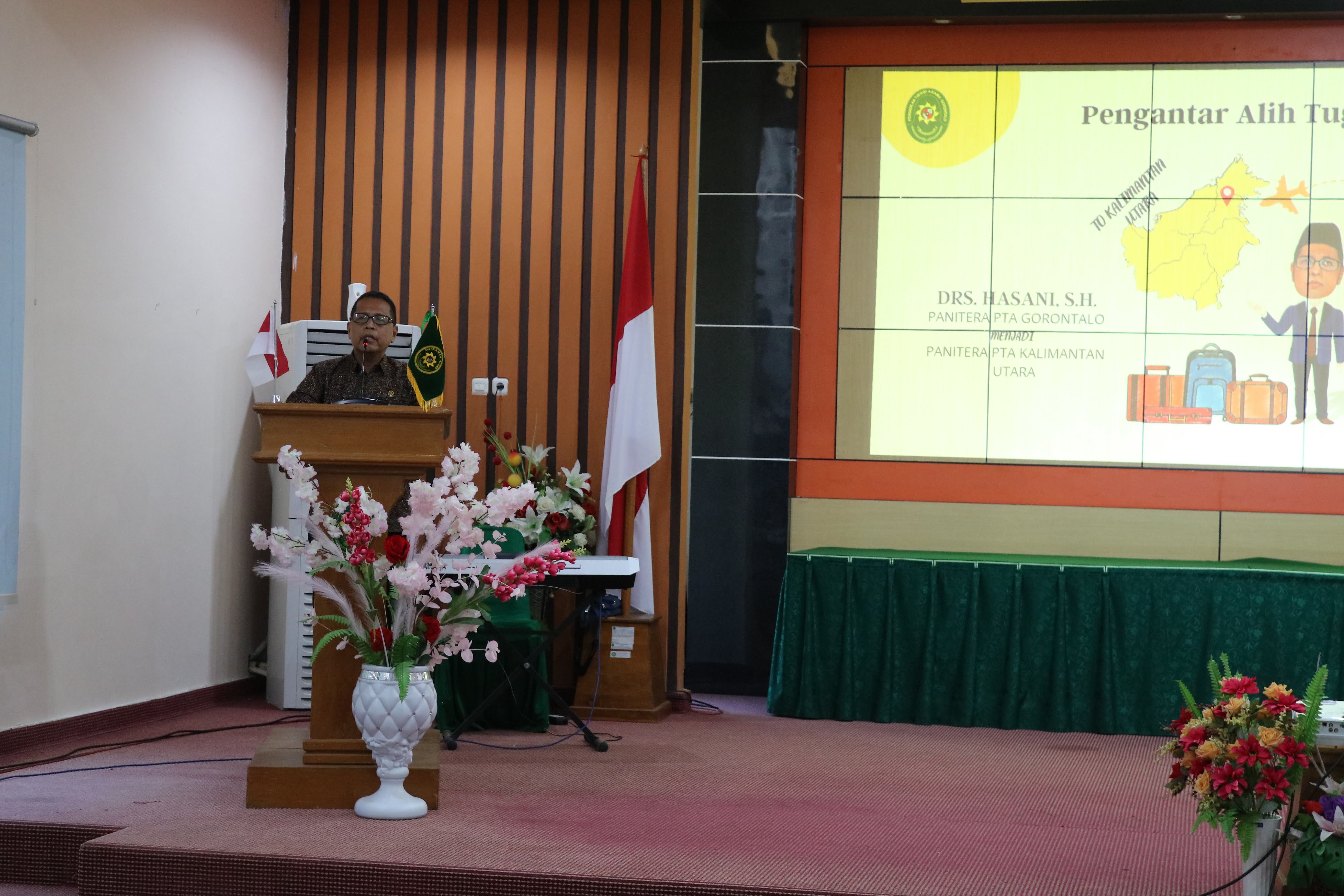GORONTALO (Selasa, 21/03/2023) - Pengadilan Tinggi Agama (PTA) Gorontalo melaksanakan pelantikan dan pengambilan sumpah jabatan Panitera serta Panitera Pengganti. Serta dirangkaikan dengan acara Pengantar Alih Tugas Panitera Lama yaitu Drs Hasani. Kegiatan tersebut dilaksanakan di Aula PTA Gorontalo dengan dihadiri oleh seluruh pegawai PTA Gorontalo dan Dharmayukti Karini Cabang PTA. Gorontalo serta para Ketua, Panitera dan Sekretaris Pengadilan Agama di wilayah hukum PTA. Gorontalo.